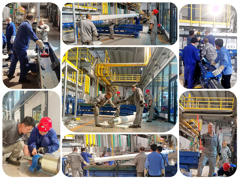 華勘玻機的浮法生產線冷端輸送輥道輥子采用獲取專利的加工工藝制造,領先于國內生產水平,輥體表面徑跳小,保證了輥道輸送的平穩性,可滿足超薄玻璃板的輸送、定位、抓取技術要求。冷端輸送輥道自動化程度高,可在線生產兩分、三分、四分、五分玻璃板。在全優化冷端生產線上,華勘玻機自主研制開發的隨動掰邊、隨動縱掰、縱分、抽紅條落板等設備大大提高了玻璃成品率。
